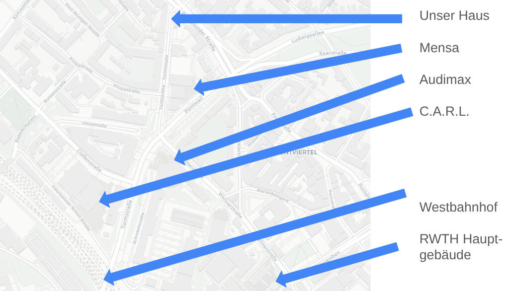 Das Haus liegt sehr günstig für den Studienalltag in Aachen.